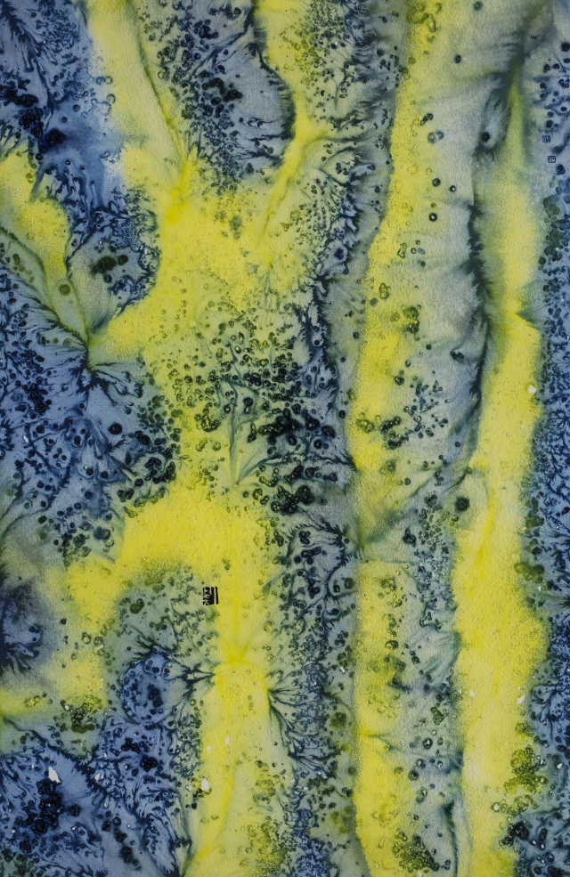 염화기법은 젖은 수묵 또는 수채 위에 소금을 흩뿌리면, 소금이 수분과 색소를 흡수해 결정 형태의 자연스러운 무늬를 만들어내는 기법이다.