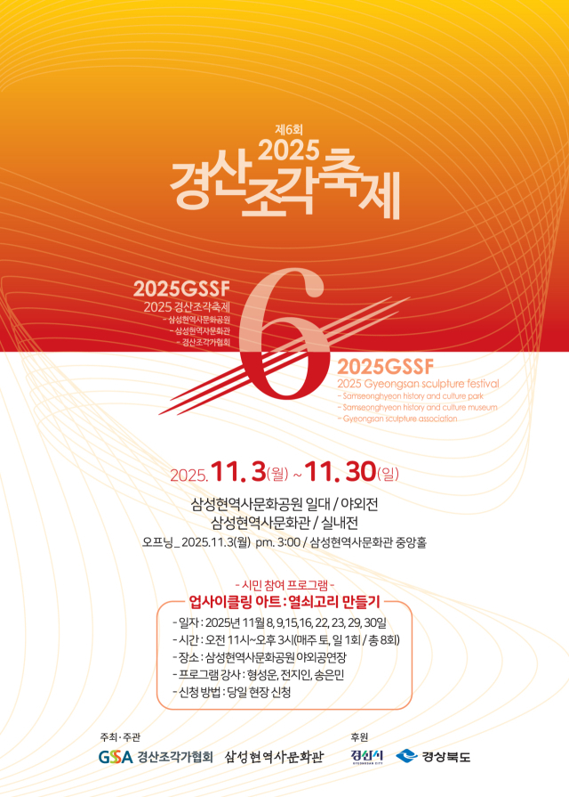 제6회 경산조각축제가 11월 3일부터 30일까지 경산 삼성현역사문화공원에서 펼쳐진다.