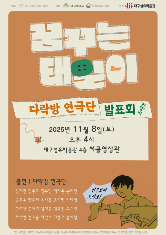 한편, 이번 프로그램은 문화체육관광부와 대구시가 후원, (재)대구문화예술진흥원이 주관하는 '2025 문화예술교육사 현장역량강화사업'의 일환으로 진행됐다.