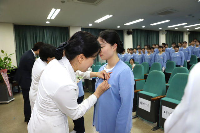 동양대학교(총장 최성해) 간호대학은 최근 영주캠퍼스 다산관에서 간호학과 2학년 학생들이 참석한 가운데 '제13회 간호대학 휘장 수여식'을 갖고 간호의 빛과 마음을 품은 미래의 간호인을 탄생시켰다.