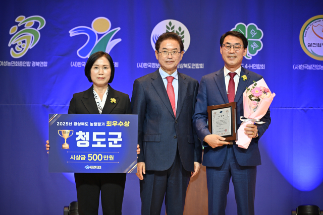 김하수 청도군수는"이번 경북도 평가 최우수기관 선정은 청도군의 농정정책이 현장에서 실질적인 성과를 거두고 있음을 보여주는 결과"라며 "앞으로도 농업대전환을 중심으로 지속가능한 미래농업 체계 구축에 역량을 집중해 나가겠다"고 했다.