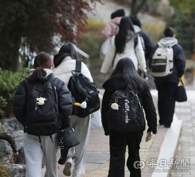 수험생들이 대구 수성구 대구여자고등학교 시험장으로 향하고 있다.