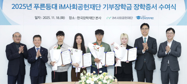iM금융그룹 iM사회공헌재단(이사장 황병우)은 지난 18일 대구시 동구 소재 한국장학재단(이사장 배병일)에서 열린 '푸른등대 기부장학금 수여식'에서 대학생들에게 장학 증서를 수여하고, 원활한 운영을 위한 기부금을 전달했다.
