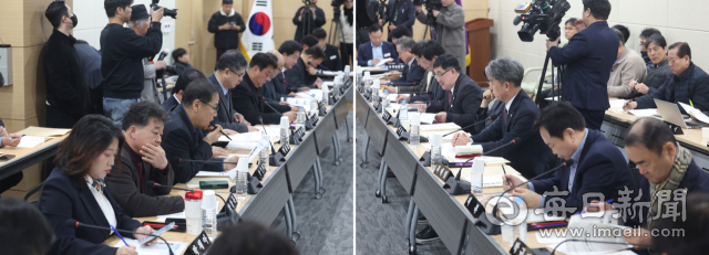 대구·경북(TK) 행정통합 논의가 급물살을 타고 있는 27일 경북도의회에서 '제3차 경북·대구행정통합특별위원회 회의'가 열리고 있다. 안성완 기자 asw0727@imaeil.com