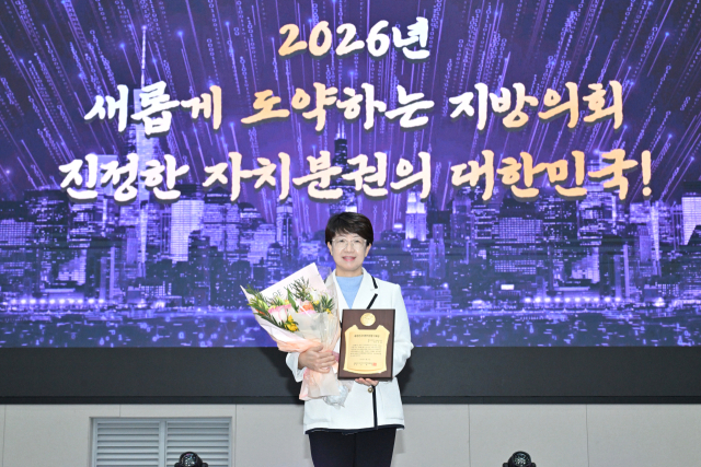 김은영 대구 달성군의회 의장이 28일 충북 청주에서 열린 '2026년 대한민국 시군자치구의회의장협의회' 정기총회에서 '대한민국지방의정봉사대상'을 수상했다.