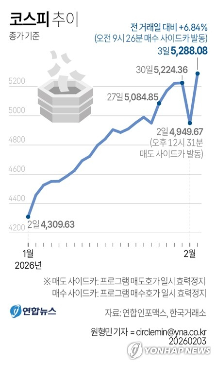 오전 9시 26분에는 코스피200선물 지수가 5% 넘게 치솟으면서 프로그램 매수호가 일시 효력정지(사이드카)가 발동되기도 했다.