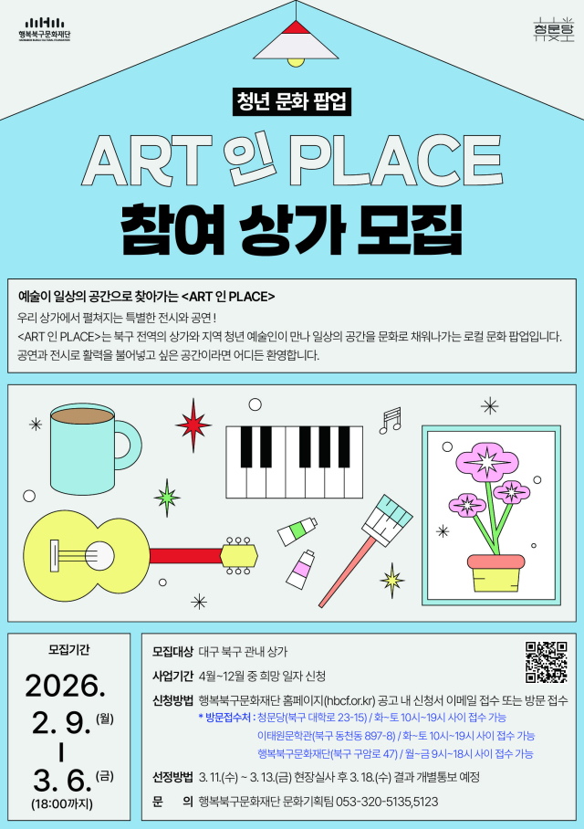 행복북구문화재단이 2026 청년문화팝업 '아트(ART) 인 플레이스(PLACE)'에 참여할 상가를 모집한다.