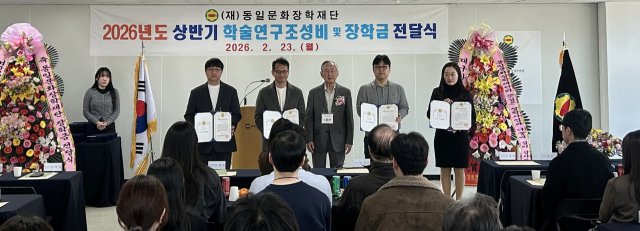 동일문화장학재단(이사장 오순택)은 23일 동일빌딩에서 2026년학술연구조성비 및 장학금 전달식을 가졌다.