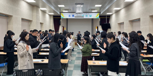 경북 영주교육지원청(교육장 이용택)은 3일 회의실에서 전 직원이 참여한 가운데 청렴실천 서약서 낭독, 서명, 법과 원칙을 준수, 반부패 활동에 적극 참여 등을 다짐하는 '2026년 청렴실천 다짐식'을 가졌다.