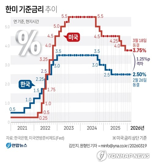 미국의 정책금리는 지난해 9·10·12월 3연속 인하 이후 올해 1월과 3월 동결로 숨 고르기에 들어갔다.