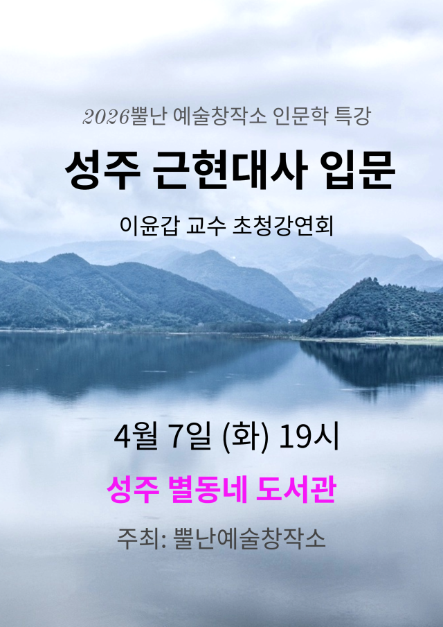 뿔난예술창작소는 오는 4월 7일(화) 오후 7시 별동네도서관에서 '성주 근현대사 입문'을 주제로 특강을 개최한다고 밝혔다.