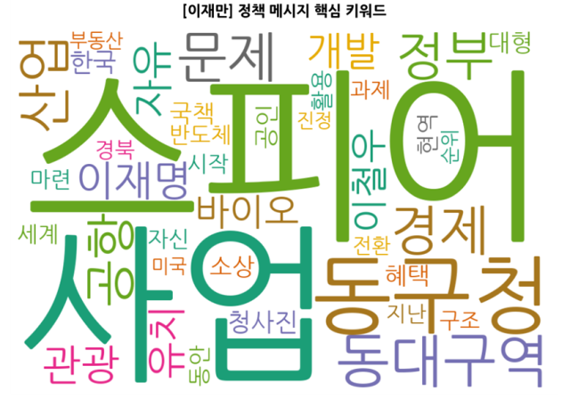 한편 이번 조사는 각 후보들의 출마선언문과 매일신문 인터뷰를 바탕으로 AI(인공지능)를 활용해 단어 빈도 분석을 통해 진행됐다. 타 후보와 구별되는 해당 후보만의 고유한 발언에는 가중치를 부여해 집계했다.