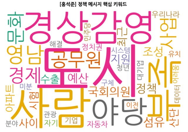 국민의힘 대구시장 경선 후보 6명의 발언을 분석한 결과 각 후보의 정치적 이미지와 전략이 뚜렷하게 갈리는 것으로 나타났다. 경선이 막바지로 향해가면서 국민의힘 후보 간 차별화 경쟁은 더욱 치열해질 것으로 전망된다.