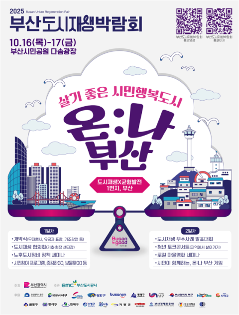 부산도시공사는 오는 16일부터 이틀간 부산시민공원 다솜마당에서 '2025 부산도시재생박람회'를 개최한다고 14일 밝혔다. 이번 행사는 부산시에서 추진한 도시재생과 균형발전 성과를 한자리에서 볼 수 있는 공유...