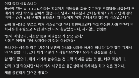 "'초대리' 달라" 했더니 '락스' 내준 횟집…주인 "죄송하다, 그런데 어떻게 사과할까요?"