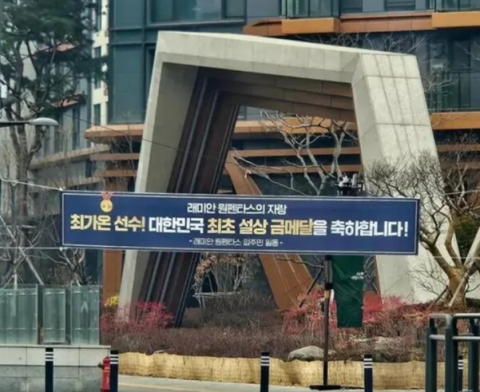 한국 설상종목 사상 첫 올림픽 금메달을 목에 건 최가온(18)을 축하하는 현수막이 서울 서초구 반포동 아파트 단지에 걸렸다가 철거된 사실이 알려졌다. 19일 여러 온라인 커뮤니티에는 서초구 반포동 래미안 원펜타스 단지 입구에 걸린 현수막 사진이 공유됐다. 입주민 일동 명의로 게시된 현수막에는 "래미안 원펜타스의 자랑, 최가온 선수! 대한민국 최초 설상 금메달을 축하합니다"라는 문구가 적혀 있었다. 2008년생인 최가온은 인근 세화여중을 졸업해 현재 세화여고에 재학 중이다. 최가온이 실제 래미안 원펜타스 거주민인지는 알려지지 않았다. 래미안 원펜타스는 강남에서도 손꼽히는 고가 아파트 단지다. 최근 실거래가 기준 전용 79㎡(24평형)가 34억원에 거래됐다. 전용 200㎡(약 60평형)는 90억~110억원, 전용 245㎡(74평형)는 120억~150억원대 매물이 형성돼 있다. 현수막은 설치된 지 얼마 지나지 않아 철거됐다. 옥외광고물법 시행령에 따르면 교차로 가장자리에 설치된 현수막은 지면으로부터 2.5m 이상 높이에 걸어야 하는데, 해당 현수막은 이 규정을 위반해 철거된 것으로 알려졌다. 앞서 온라인 커뮤니티에는 최가온의 금메달 획득을 비난하는 글이 다수 올라왔다. 한 네티즌은 구청에 "100억짜리 아파트에 사는 금수저가 금메달을 땄다고 자랑질을 한다"는 내용의 민원을 제기했다고 밝히기도 했다. 다만 악성 민원과 현수막 철거 사이에는 큰 연관이 없는 것으로 알려졌다. 최가온은 지난 13일 이탈리아 리비뇨 스노파크에서 열린 스노보드 여자 하프파이프 결선에서 90.25점을 받아 우승했다. 결선 1·2차 시기에서 잇따라 넘어지는 위기를 겪었지만, 마지막 3차 시기에서 완성도 높은 연기를 선보이며 역전 우승을 이뤄냈다. 만 17세 3개월의 나이로 이 종목 최연소 우승 기록도 세웠다. 이번 우승으로 최가온은 대한스키·스노보드협회에서 포상금 3억원을 받는다.