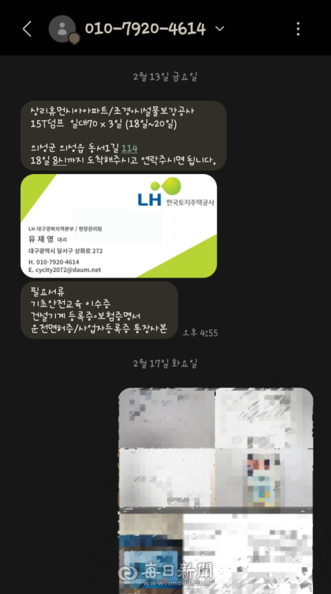 설 연휴 기간 경북 안동과 의성 일대에서 건설 장비 자영업자들을 노린 한국토지주택공사(LH) 사칭 보이스피싱 시도가 잇따라 발생했다. 건설 경기 침체로 일감이 줄어든 상황을 악용한 수법으로 금전 피해로 이어질 뻔한 사례도 확인됐다. 매일신문 취재에 따르면 의성에서 덤프트럭을 운행하는 A씨는 설 명절이던 지난 13일부터 한국토지주택공사(LH) 대리라고 자신을 소개한 B씨로부터 여러 차례 전화와 메시지를 받았다. 의성의 한 아파트 조경·시설물 보강 공사 현장에 15톤(t) 덤프트럭을 3일간 투입해 달라는 제안에다 하루 일당 70만원이었다. 최근 건설 경기가 얼어붙어 일거리가 줄어든 터라 A씨는 연휴임에도 일을 하기로 마음먹었다. 가족들과의 명절 시간을 뒤로하고 18일 이른 아침 현장으로 향했지만, 해당 주소지에는 공사 흔적조차 없었다. 이후 연락을 취하려 했지만 전화는 받지 않았고 메시지에도 답이 없었다. A씨는 "명절에 3일이라도 일할 수 있다는 생각에 준비했는데 완전히 속았다"며 "기름값과 시간뿐만 아니라 명절날 가족들과의 추억마저 날려버렸다"고 허탈감을 감추지 못했다. 안동에서 중장비업을 하는 C씨도 비슷한 전화를 받았다. LH 공사라며 장비 투입을 제안한 뒤 "연휴라 대금 집행이 어렵다. 현장에서 사용할 라벨링 기계 대금을 먼저 결제해 주면 공사 대금에서 넉넉히 정산해 주겠다"고 요구했다. C씨는 수상함을 느끼고 주변에 문의한 끝에 입금을 하지 않았다. 그는 "공공기관이라고 해서 순간 믿을 뻔했다"며 "연휴라 결제 시스템이 안 된다는 말에 의심이 들었다"고 전했다. 건설 불황과 명절 연휴라는 특수 상황을 노린 범죄 시도가 이어지면서 지역 자영업자들의 불안도 커지고 있다. 절박한 심리를 파고드는 신종 사기를 당할 가능성도 없지 않아서다. 지역 한 공기업 관계자는 "정상적인 공공 공사는 계약 절차 없이 개인에게 자재비나 장비 대금을 먼저 요구하지 않지만 절박한 지역 자영업자의 심리를 교묘하게 악용하는 게 문제"며 "최근 공공기관 명의를 내세워 선입금을 요구하는 사례가 늘어나고 있어 공기업들도 이미지 하락 등 피해가 크다"고 토로했다. 경찰도 "공공기관이나 대기업을 사칭해 공사·납품을 제안하고 선결제를 요구하는 사례가 반복되고 있다"며 "유출된 개인정보로 인한 2차 피해방지가 필요하고 의심 사례는 즉시 경찰에 신고해 달라"고 당부했다.